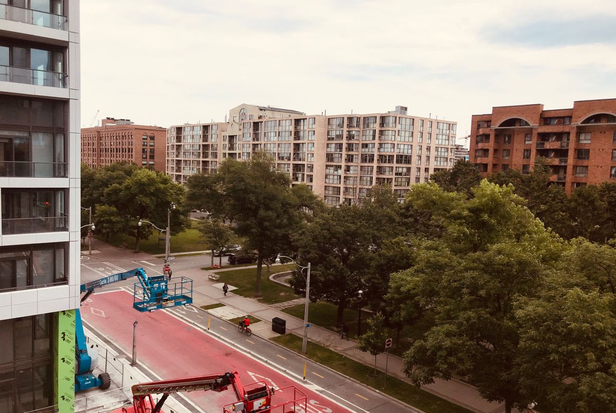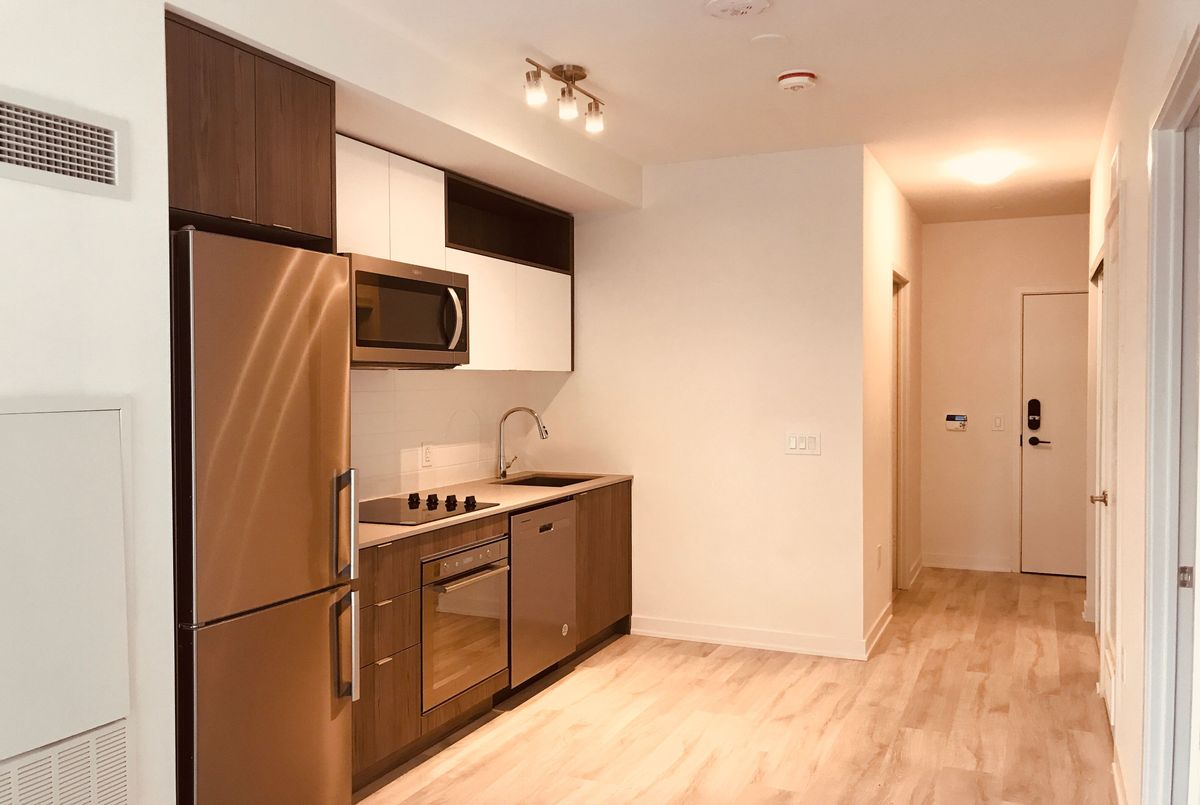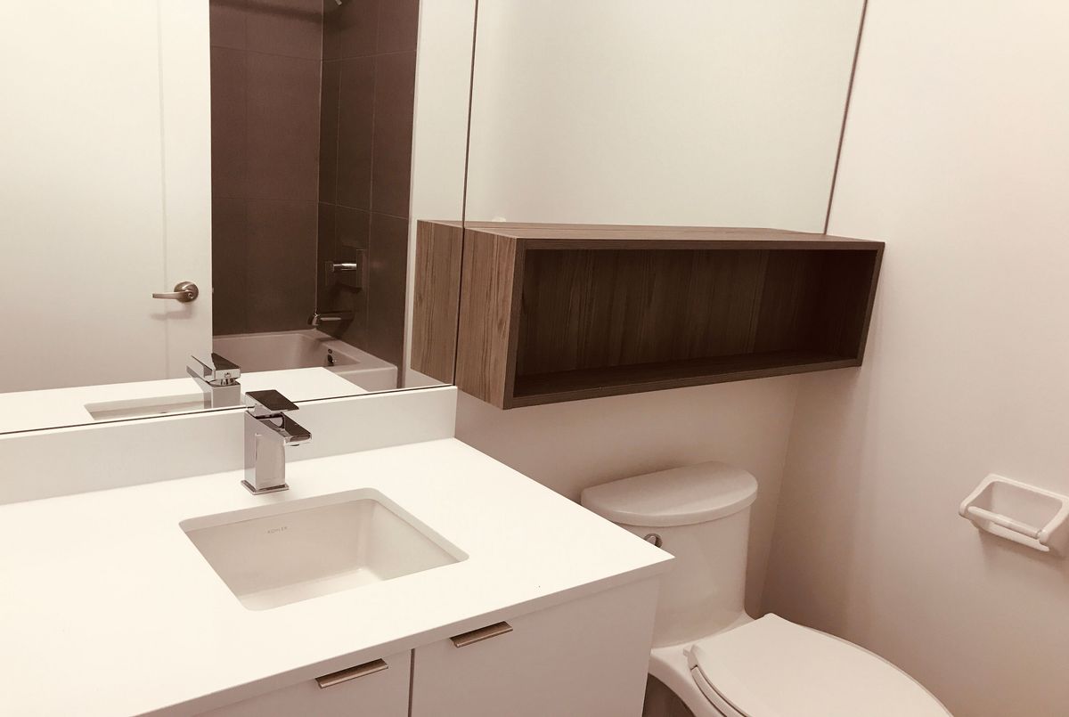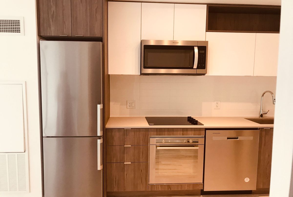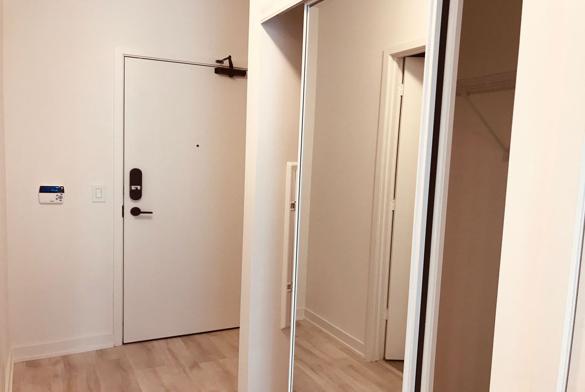 Welcome to Time & Space by Pemberton, a modern 2-year-old residence in Toronto's vibrant waterfront community. Ideally located at Front St E & Sherbourne, just steps to the Distillery District, St. Lawrence Market, TTC, Union Station, and Sugar Beach. This bright and functional 1+Den, 1 Bath suite with balcony offers a well-designed open-concept layout featuring 9-ft smooth ceilings, floor-to-ceiling windows, and premium 7" wide laminate flooring throughout. The contemporary kitchen is equipped with quartz countertops and integrated stainless steel appliances, seamlessly flowing into the living and dining area-perfect for both daily living and entertaining. The spacious den provides excellent flexibility, ideal as a home office or can be used as a second bedroom. Enjoy pleasant courtyard views from your private balcony. Residents enjoy access to exceptional amenities, including an infinity-edge pool, rooftop cabanas, outdoor BBQ area, fully equipped gym, yoga studio, party room, and games room. Heat and water included. Located in one of downtown Toronto's most desirable neighbourhoods, with everything you need just steps away.